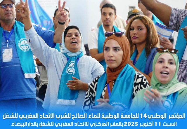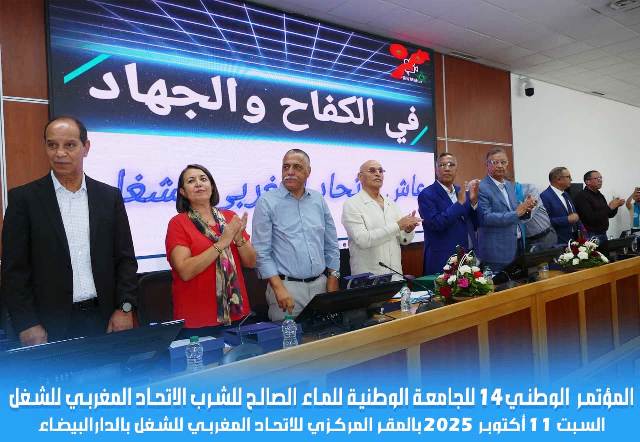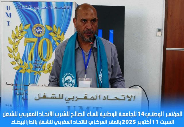 انعقد يوم السبت 11 أكتوبر 2025 بالمقر المركزي للاتحاد المغربي للشغل بالدار البيضاء، المؤتمر الرابع عشر للجامعة الوطنية للماء الصالح للشرب، تحت شعار: