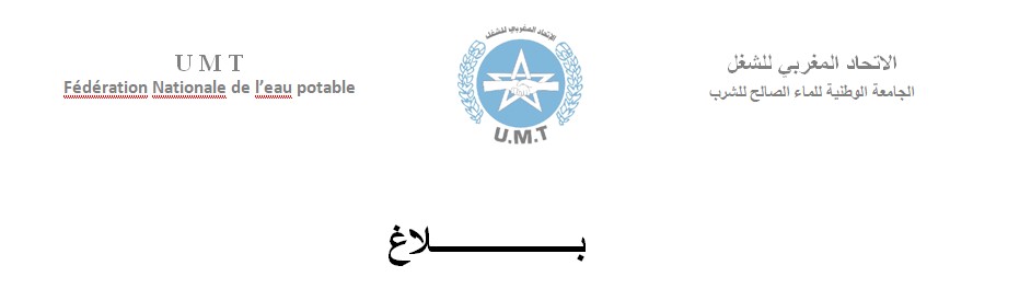 وفي ختام البيان، دعا المكتب الجامعي جميع مستخدمي قطاع الماء والشركات الجهوية إلى الالتفاف حول إطارهم النقابي العتيد، الجامعة الوطنية للماء الصالح للشرب، من أجل مواجهة التحديات المقبلة وصون الحقوق والمكتسبات المادية والمعنوية للشغيلة.