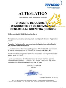 غرفة التجارة والصناعة والخدمات ببني ملال خنيقرة تحصل على شهادة الجودة 9001 وتعزز جودة خدماتها.docx
