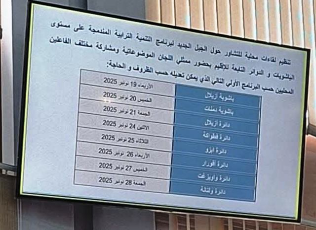 كما أعلنت عمالة الإقليم أن المرحلة المقبلة ستشهد تنظيم ورشات تقنية موضوعاتية، تجمع خبراء وممثلي الإدارات والجماعات الترابية، قصد صياغة خطة عمل تنفيذية واضحة، تشمل البرامج والمشاريع ذات الأولوية خلال السنوات القادمة.