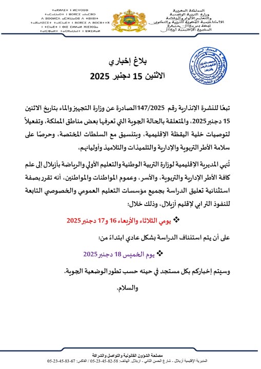 أمام هذه المعطيات، دعت السلطات المواطنين، خصوصا في المناطق المعنية، إلى توخي الحذر واحترام تدابير السلامة، تفاديا لأي مخاطر قد تهدد الأرواح والممتلكات.