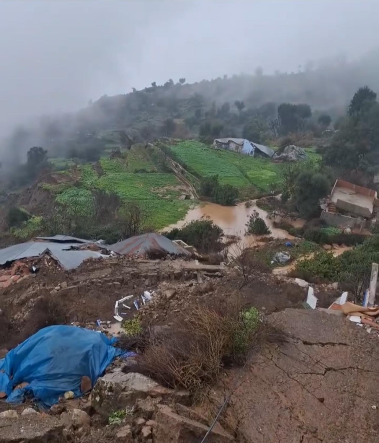 عرف دوار أغبالو، التابع لجماعة تنقوب بإقليم شفشاون، خلال الساعات الأولى من صباح اليوم، حادثاً خطيراً عقب تساقطات مطرية قوية أدت إلى فيضانات وانجراف للتربة، ما أسفر عن انهيار نحو خمسين منزلاً ومسجدين، متسبباً في خسائر مادية كبيرة وحالة من الذعر في أوساط الساكنة.